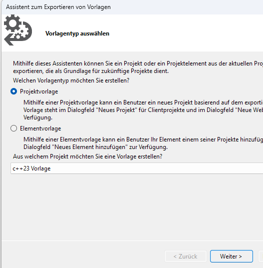 Um Anwendungen nach dem aktuellen C++23 Standard zu erstellen, sind einige grundlegenden Einstellungen vorzunehmen. Am elegantesten geht dies, wenn eine eigene Vorlage hierfür erstellt wird.